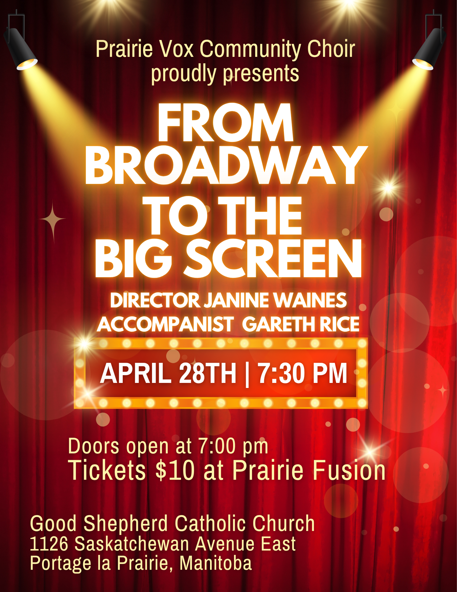Dust off your red carpet attire and get ready for a night of musical magic! Prairie Vox, our very own community choir, invites you to a spectacular spring concert celebrating the greatest hits of stage and cinema. This is a performance you won't want to miss.