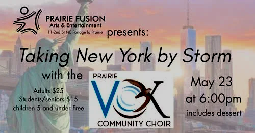 Taking New York by Storm May 23 at 6:00pm to 9:00pm at Prairie Fusion Arts & Entertainment 11 - 2nd St NE, Portage la Prairie.